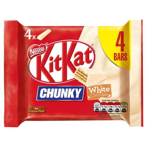 Kitkat Chunky Milk Chocolate 4 Pk Pmp 1.85 Pack & Size : 24(4X32G) Pallet Qty : 144 Layer Qty : 0 Product Code : 12623711 - + Add to Quote