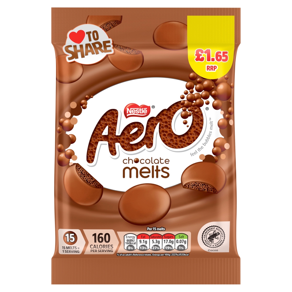 Aero Melts Milk Pouch 92G Pack & Size : 8X92G Pallet Qty : 196 Layer Qty : 28 Product Code : 12500157 - + Add to Quote